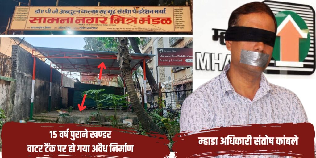 दूसरा गंभीर सवाल ‘ओम सिद्धिविनायक सोसाइटी’ को लेकर था, जहाँ 15 साल पुरानी पानी की टंकी पर अवैध सीमेंट शेड बनाया गया है। म्हाडा के ब्लूप्रिंट में इस निर्माण का कोई उल्लेख नहीं है। जब अधिकारी से पूछा गया कि “नक्शे में अनुमति न होने के बावजूद यह निर्माण कैसे हुआ?” और टंकी पर हो रहे डांस के वीडियो सबूत दिए गए, तो अधिकारी ने जवाब देने के बजाय संपर्क ही काट दिया।