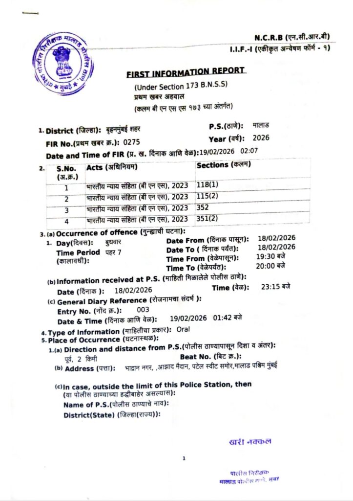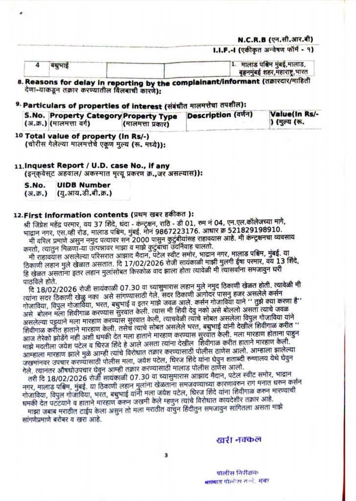 कर्सन का यह दावा कि ‘सभी अधिकारी मेरी जेब में हैं’, आज सच साबित होता दिख रहा है। अगर एक अपराधी खुलेआम किसी को मारने की हिम्मत रखता है और पुलिस उसे बचाने के लिए FIR में खेल करती है, तो यह मान लेना चाहिए कि मालाड पुलिस स्टेशन का इकबाल खत्म हो चुका है।